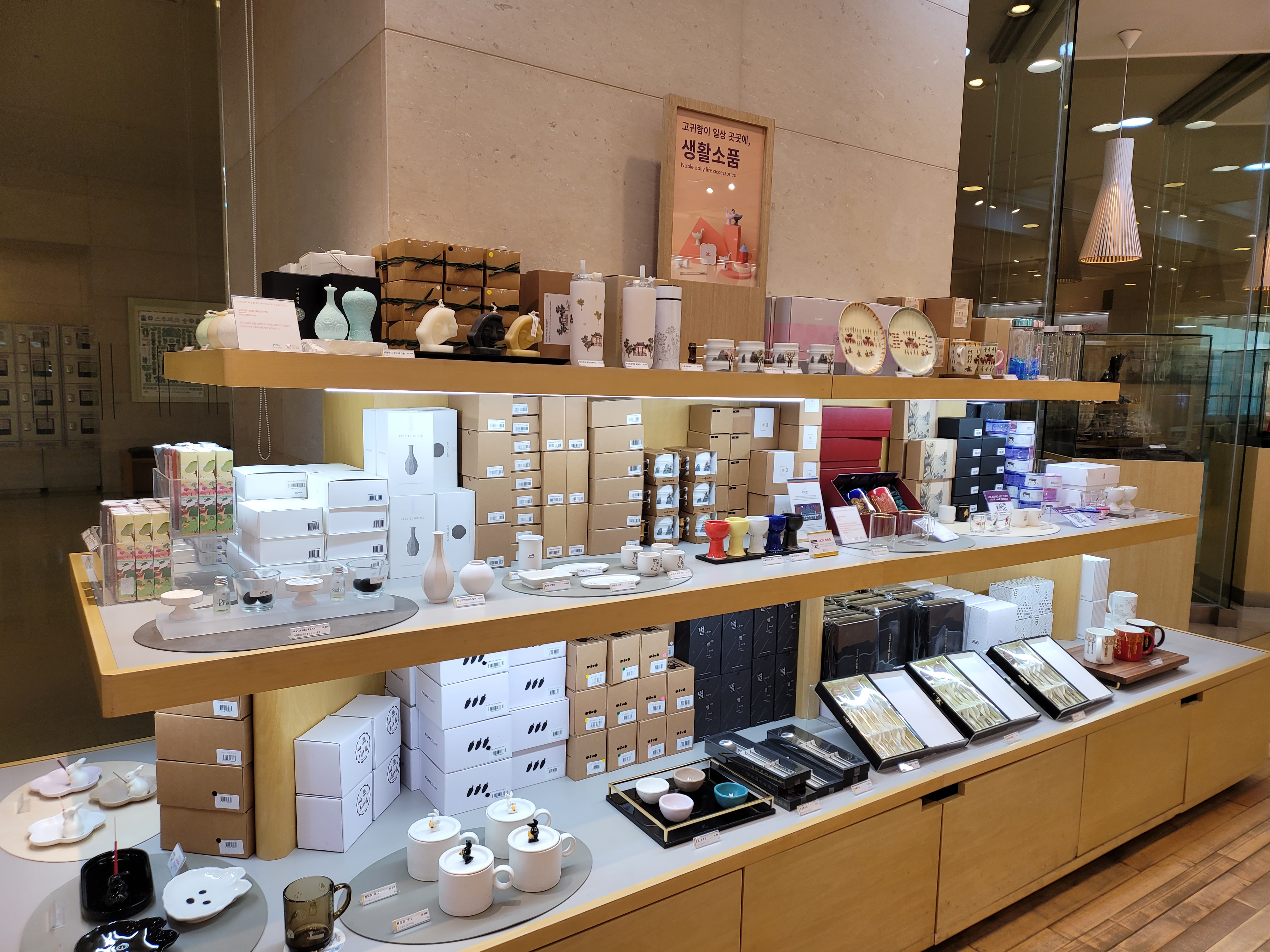 전통적인 문양이나 문화재를 모티브로 한 제품부터 현대적인 감각을 반영한 디자인의 생활용품, 문구류, 도자기, 전통 공예품 등을 포함한 다양한 상품을 자유롭게 체험하고 탐색할 수 있는 기회를 제공합니다.