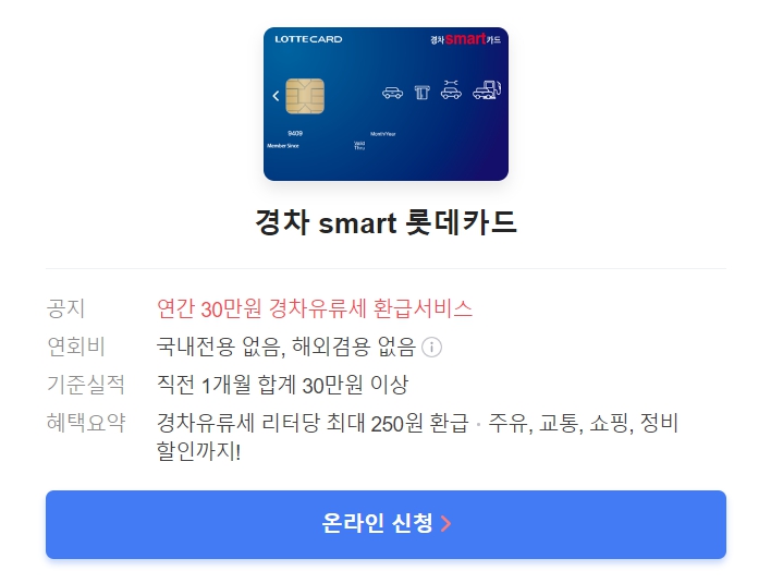 ① 유류세 환급 전용 카드 발급: 경차 유류세 환급을 받기 위해서는 롯데카드, 신한카드 등 지정된 카드사에서 유류세 환급 전용 카드를 발급받아야 합니다.