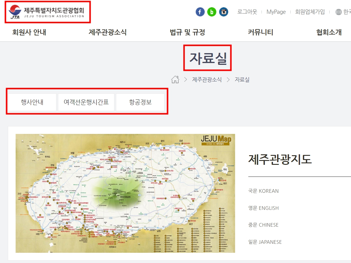 제주 관광협회에서 제작한 제주 관광지도에는 테마별로 관광지가 표기되어 있습니다. 박물관이나 오름, 공원, 레저 체험 등 다양한 관광지를 한눈에 확인할 수 있어 여행 시 많은 도움이 되는 지도입니다. 제주관광협회에서는 관광지도뿐만 아니라 여객선운행시간표나 항공정보 등의 정보를 확인할 수 있으니 관광지도와 함께 확인해 보는 것도 좋습니다.