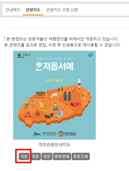 제주 관광지도 우편신청 제주 관광지도를 PC나 모바일이 아닌 종이지도로도 받아볼 수 있습니다.