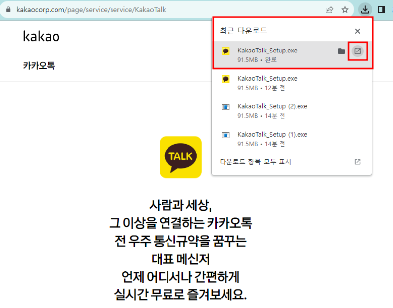 선택한 운영 체제에 맞는 다운로드 버튼을 클릭하면, 설치 파일이 컴퓨터로 다운로드됩니다. 파일 다운로드가 완료되면, 다운로드 폴더에서 해당 설치 파일을 찾을 수 있습니다. 파일 이름은 보통 'KakaoTalk_Setup.exe' 또는 'KakaoTalk_Setup.dmg' 등으로 표시됩니다.