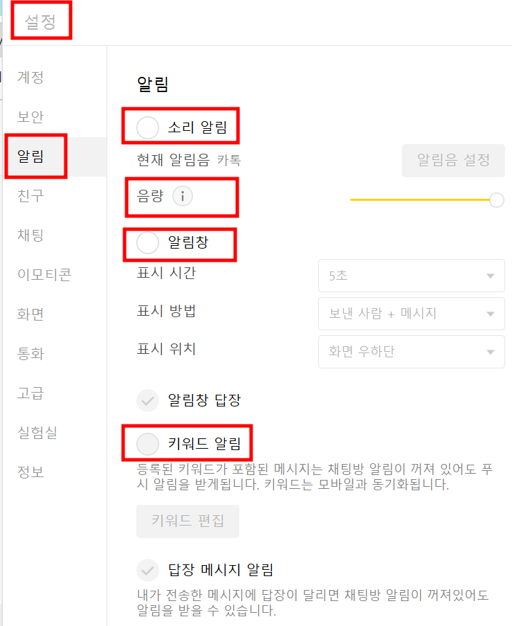 카카오톡 PC버전을 사용하면서 가장 먼저 설정해야 할 부분은 바로 '알림 설정'입니다.