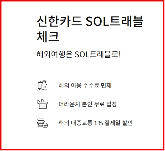 - 국내외에서 사용 시 한도 없이 2% 할인을 제공하며, 트래블월렛과의 제휴를 통해 해외 가맹점에서도 동일한 할인 혜택이 적용된다.