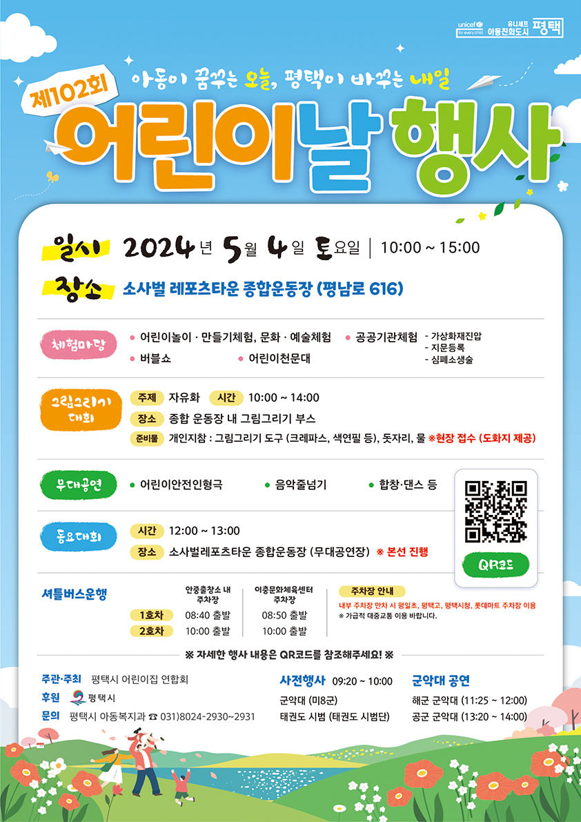 ▶ 주요 행사: 체험마당, 그림그리기대회, 무대공연, 동요대회,